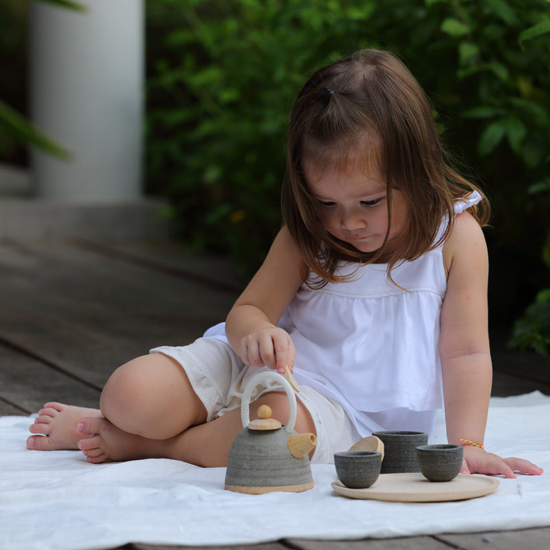 Wooden Tea Set for Playing, Wooden Toy Tea Set For Wooden Play Kitchen