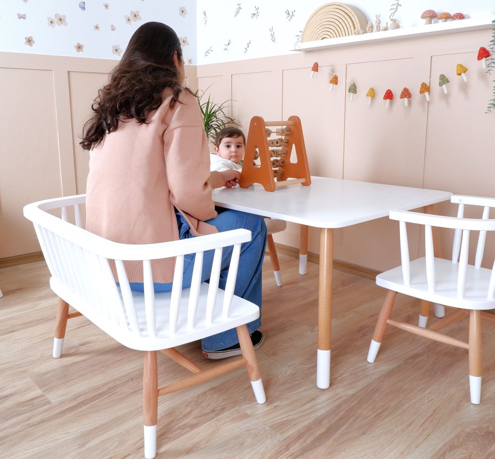 Wooden Kids Table, Kids Windsor Chair, and Kids Windsor Bench Set for Kids and Toddler - Customizable