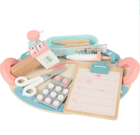 Wooden Doctor Toys Set Pretend Play Educational Toy for Children Medical Simulation Medicine Pill Examination Set Toy for Kids