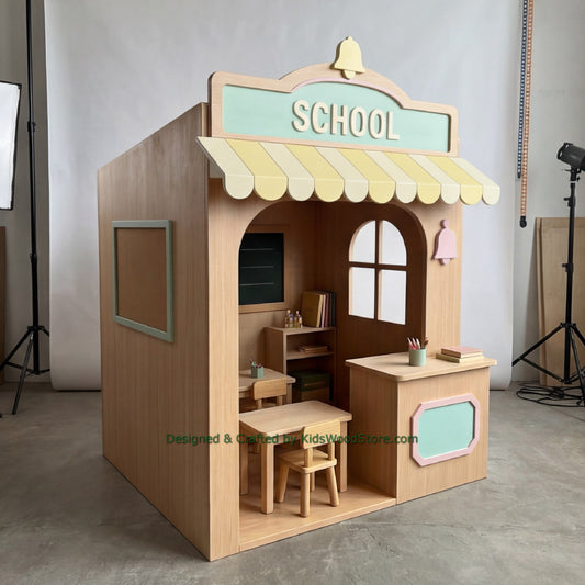 Wooden School Playhouse + Furnitures for Kids | Personalized 25+ Themes | All-Inclusive Turnkey Project