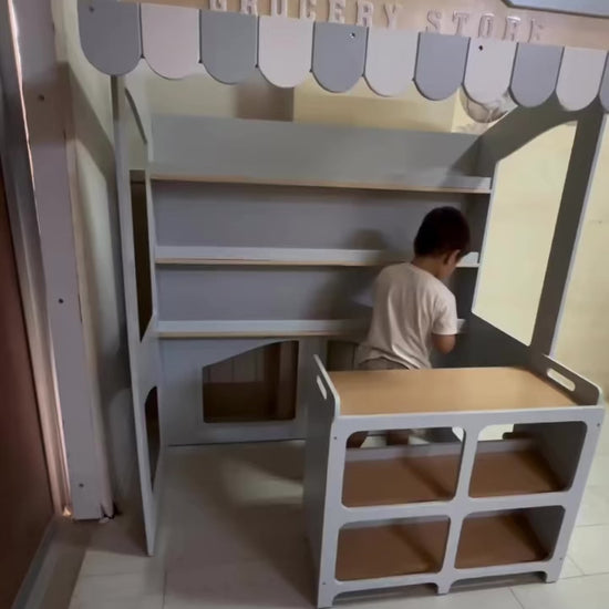 Turn your room into a charming mini town! This set includes six themed playhouses — Grocery Store, Café, Police, Art Studio, Doctor, and Book Store — crafted from durable plywood (not MDF) and ready to ship.