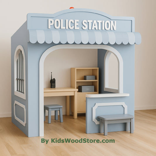 Casita de madera de la comisaría | Juego de simulación para niños en interiores y exteriores