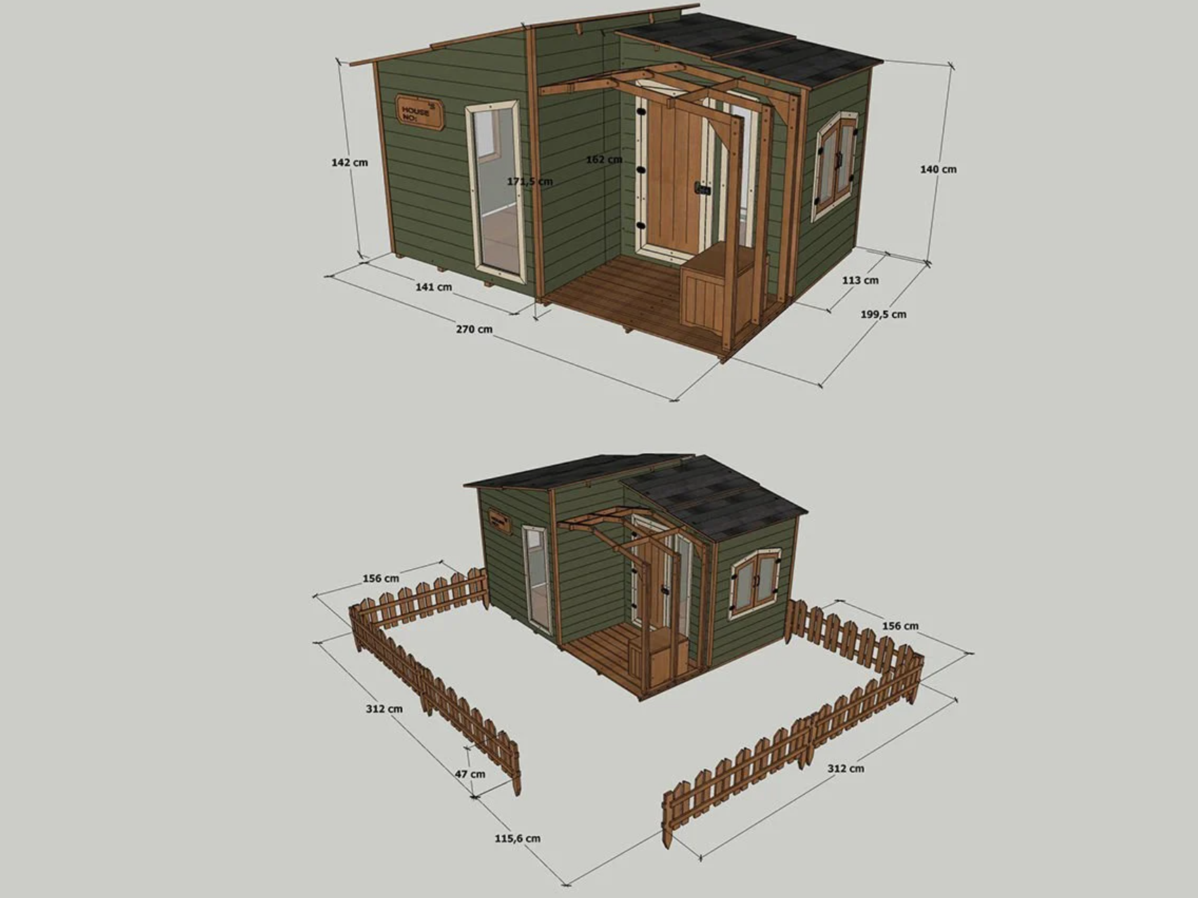 Modern Wooden Playhouse with Garden Fence | Budget Friendly