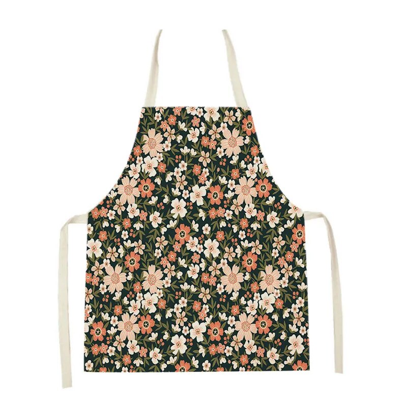 Apron Flower Kitchen Household Item Plant Print Apron Adult Hair Apron 55-68cm Apron Custom Logo Kitchen Supplie Tablier