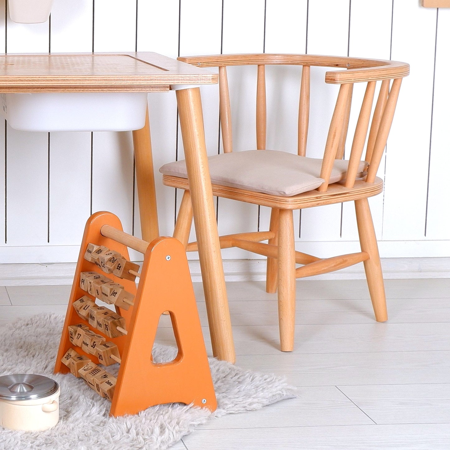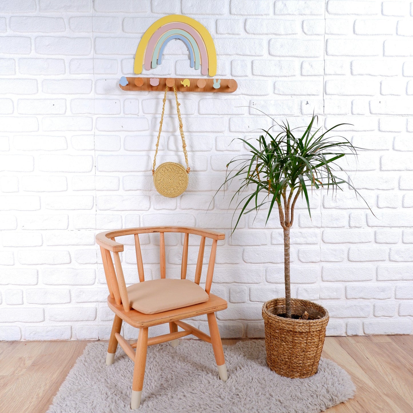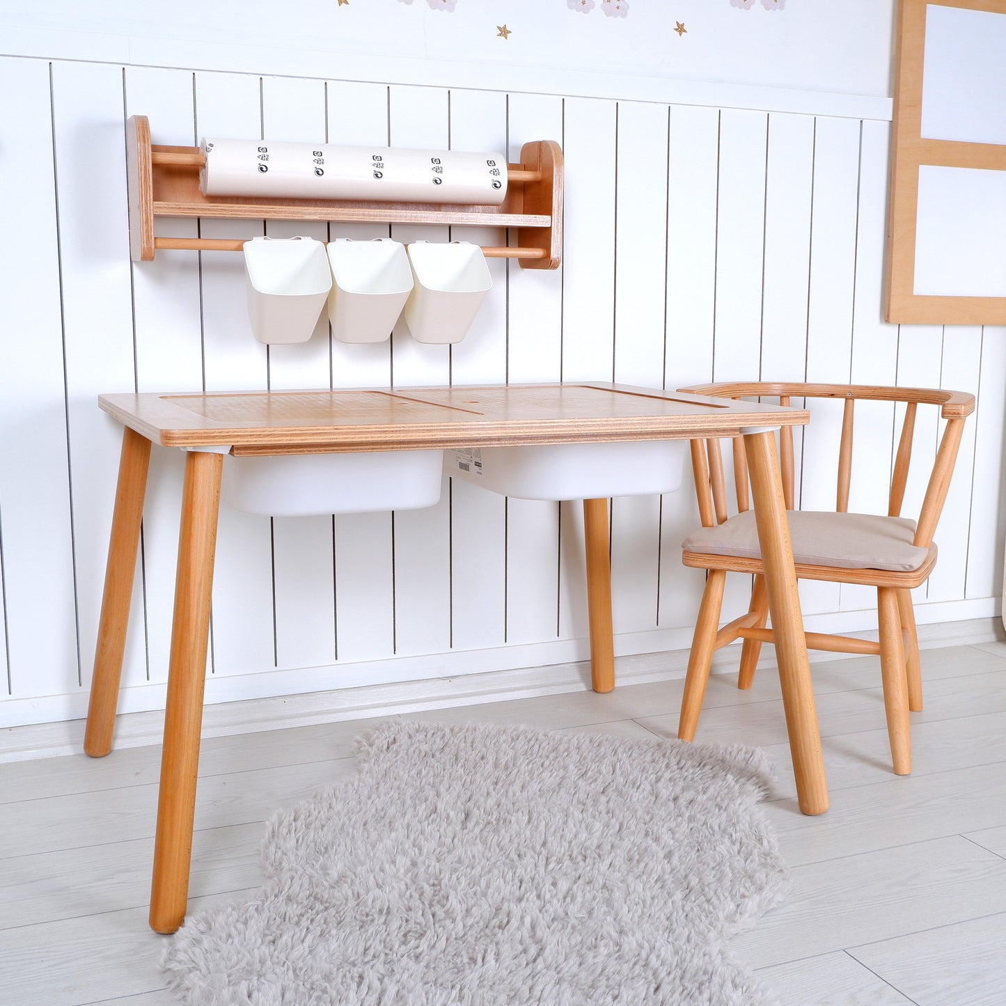 Add a touch of elegance to your child's room or play area with this Montessori-inspired wooden chair and table set. Our collection of eco-friendly wooden toys and kids' furniture offers high-quality and safe options for your little ones. Order now to bring a unique and charming element to your child's play space!