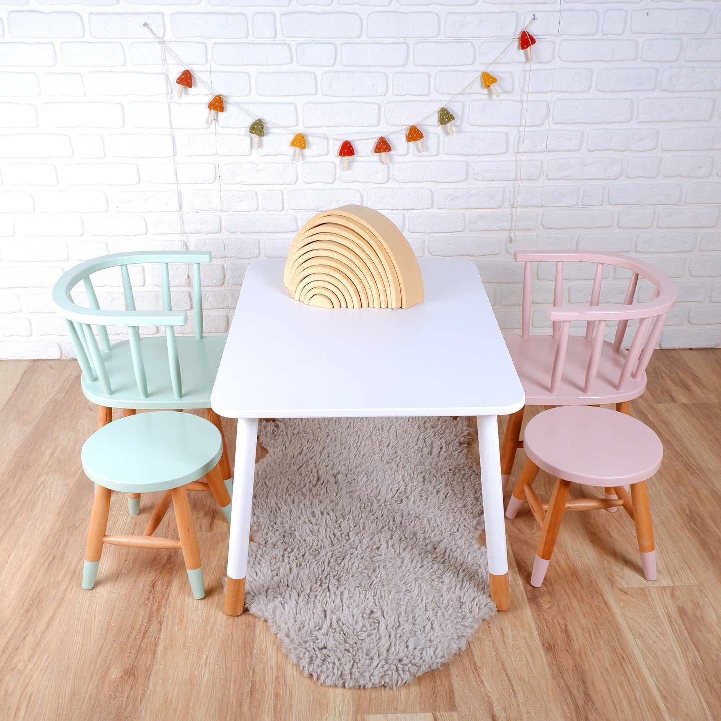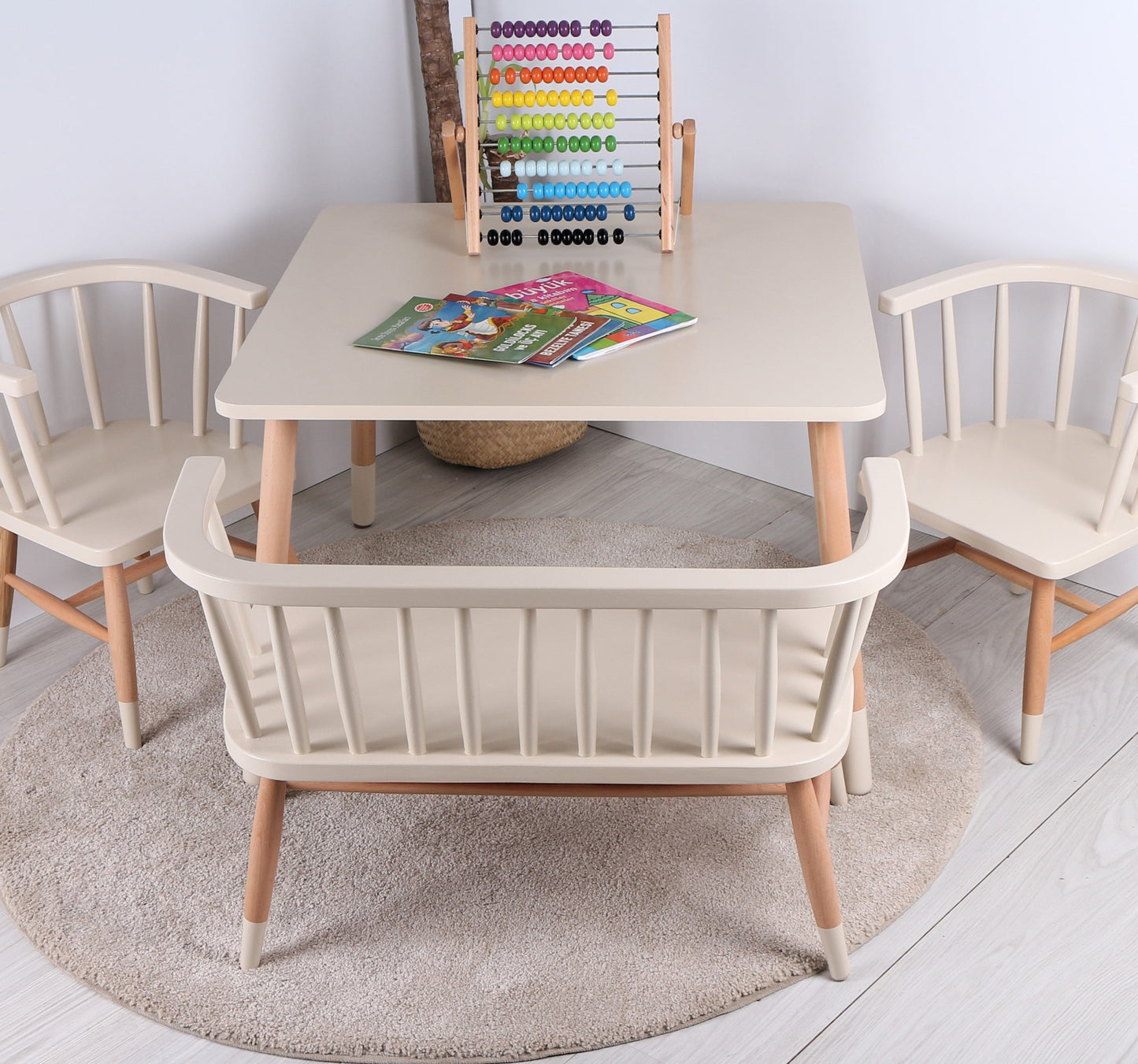 Hello dear parents! It's time to make a wonderful change in your child's room. How about equipping your children's space with a perfect set of children's furniture? We present to you a unique and harmonious option: Customizable Wooden Table, Windsor Chair, and Windsor Bench Set for Kids!