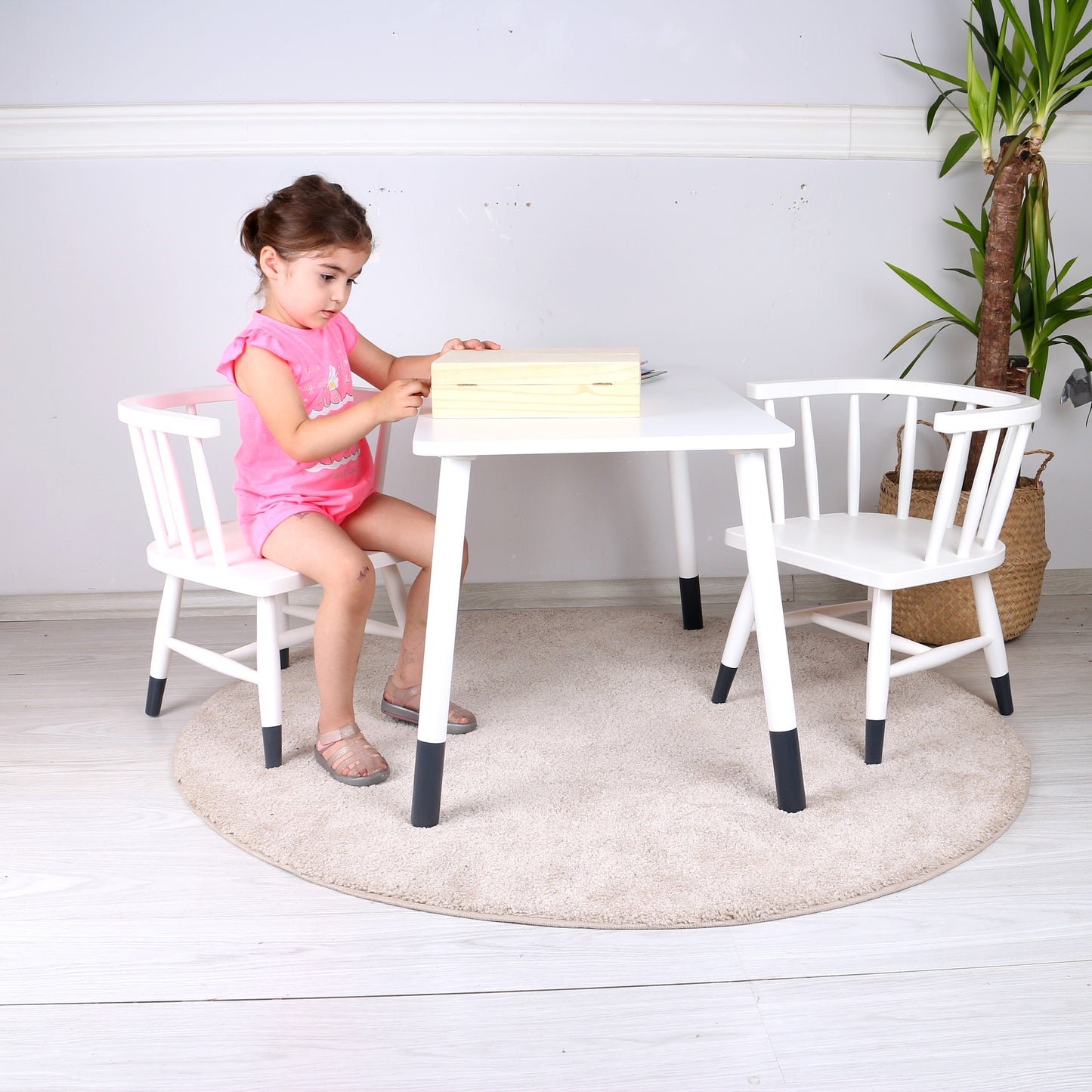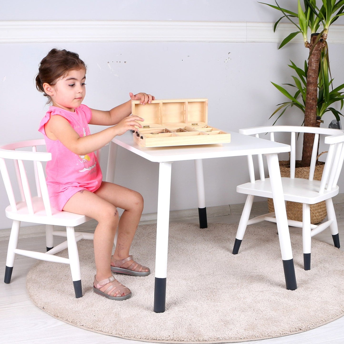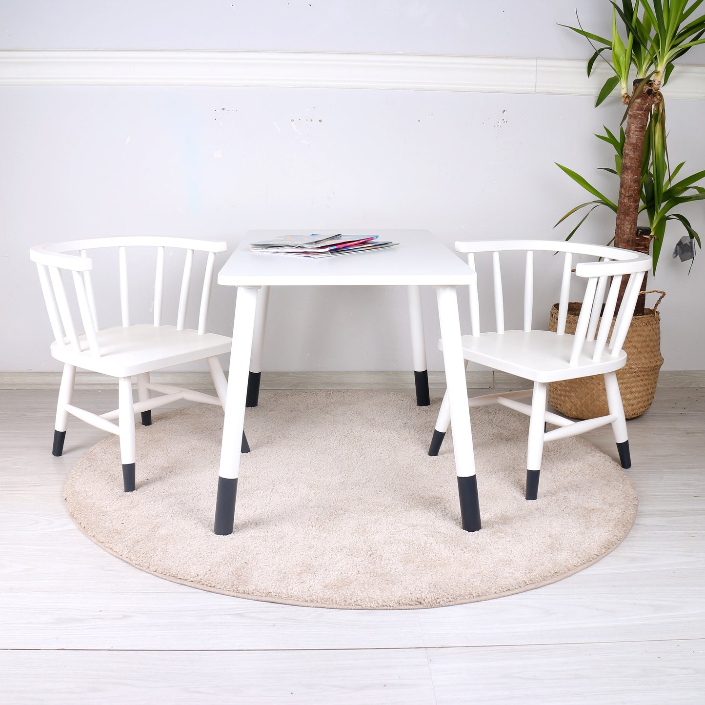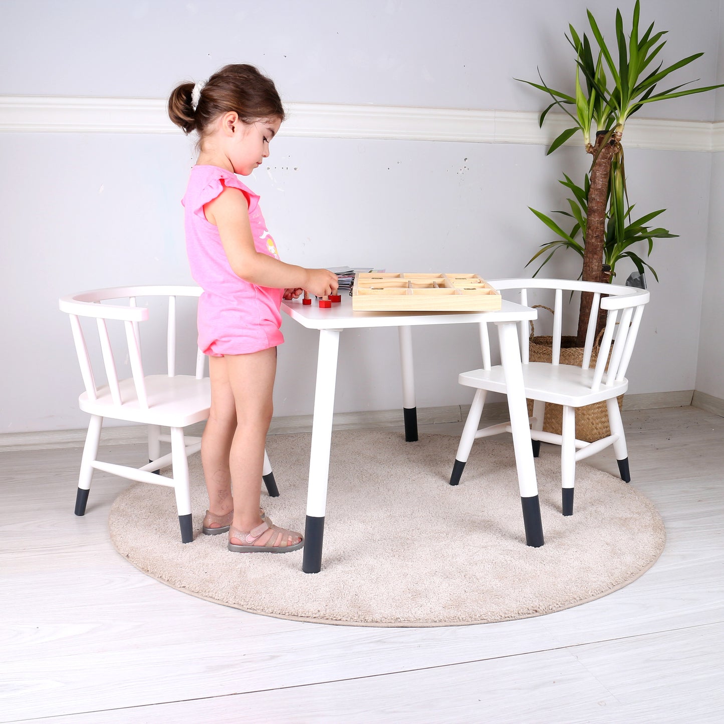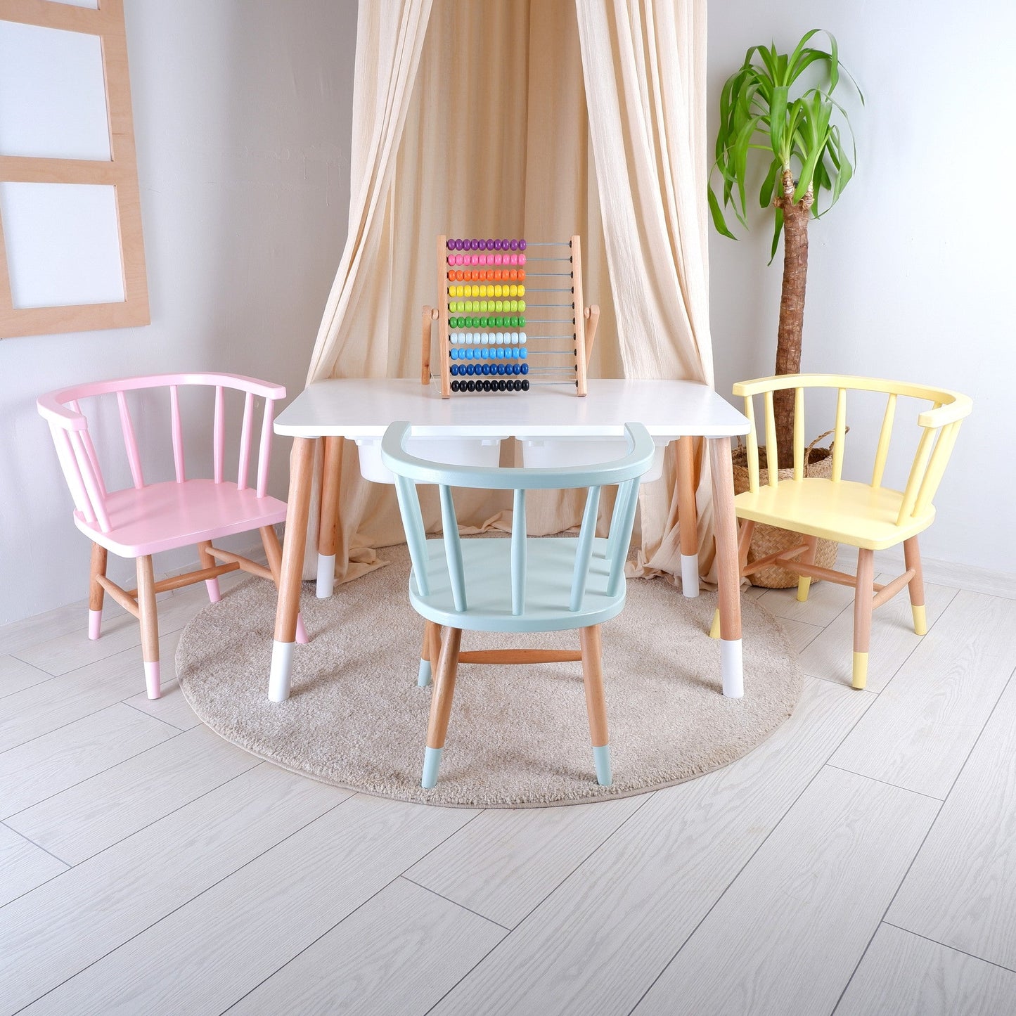 This Windsor style wooden kids chair and table set is the perfect addition to your child's playroom or Montessori learning space. Handcrafted from solid wood, this children's furniture is both eco-friendly and durable, ensuring long-lasting use for years of imaginative play.