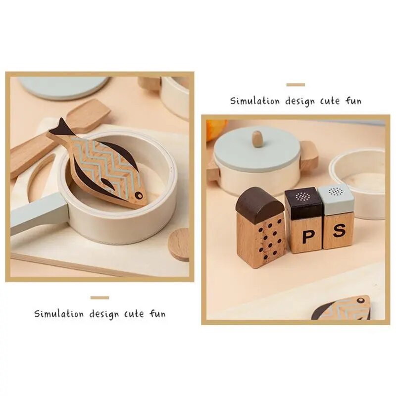 Wooden Cooking Pot Set Kids Pretend Play Simulation Kitchen Toys Imitation Game Tableware Role Play Toy For Childrens Gifts For Wooden Play Kitchen
