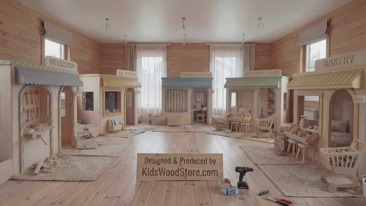 The combination of Workshop, School, Police Station, Grocery Store, and Bakery creates a balanced environment focused on learning, responsibility, cooperation, and imaginative storytelling.