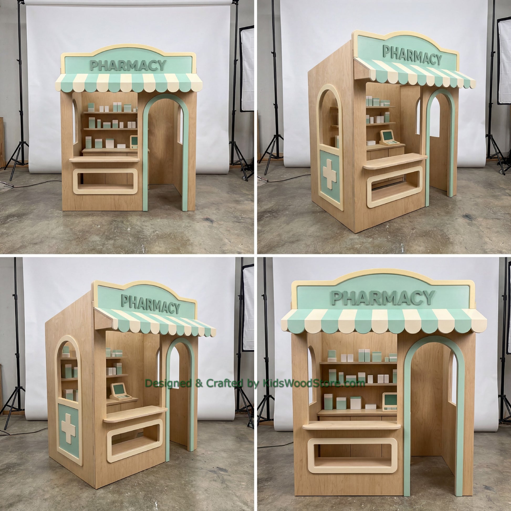 Wooden Pharmacy Playhouse + Furnitures for Kids | Personalized 25+ Themes | All-Inclusive Turnkey Project