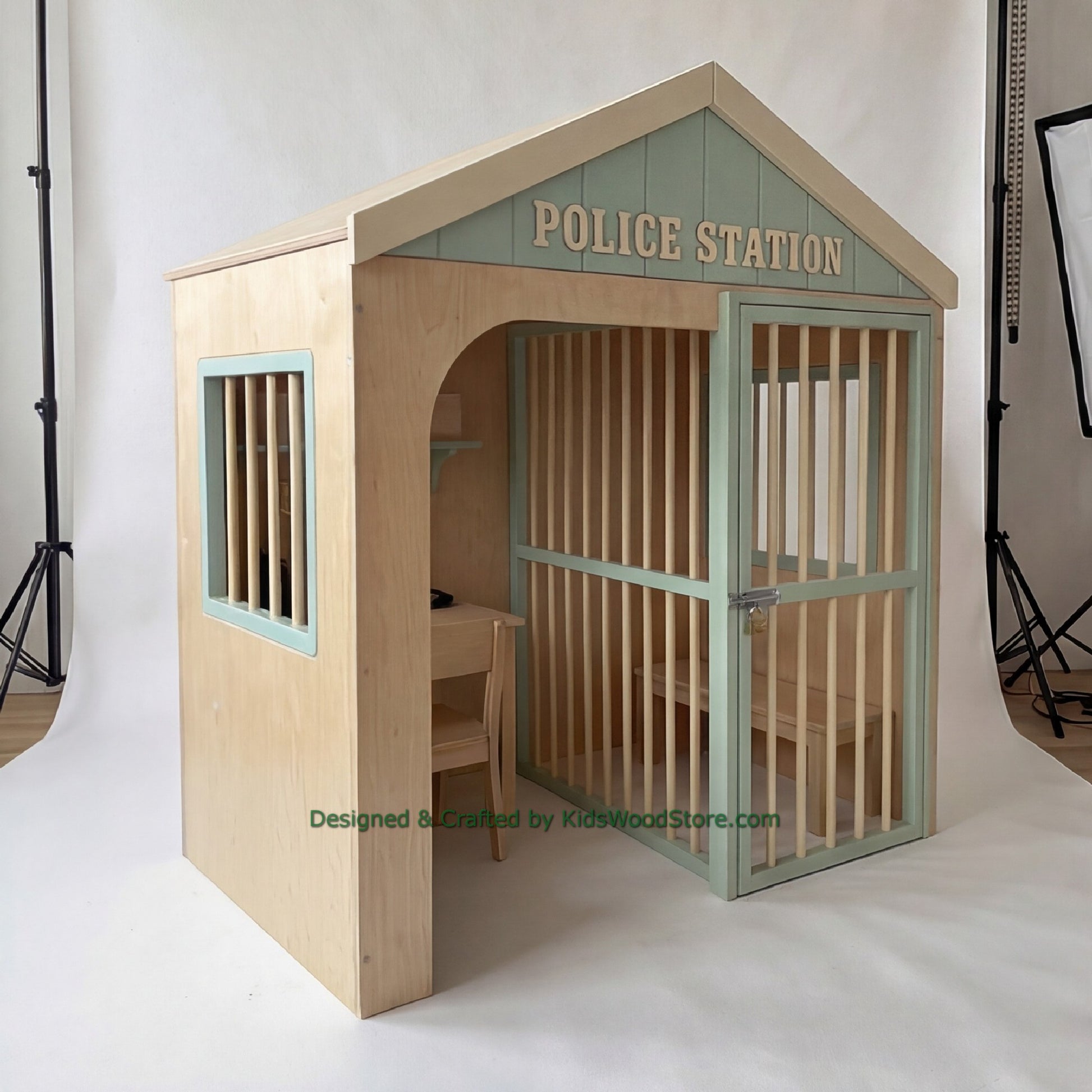 Wooden Police Station Playhouse + Furnitures for Kids | Personalized 20+ Themes | All-Inclusive Turnkey Project