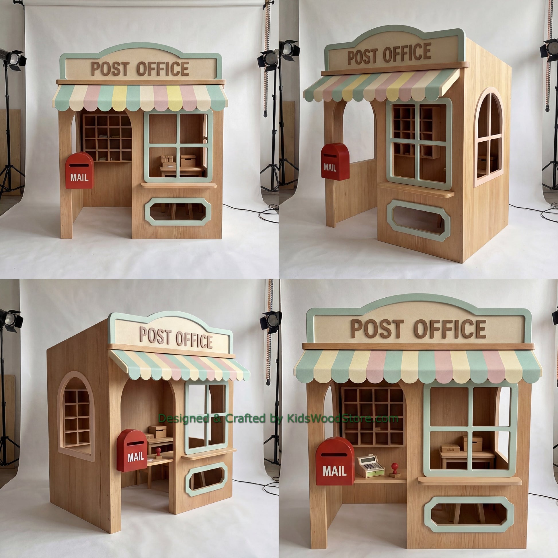 Wooden Post Office Playhouse + Furnitures for Kids | Personalized 25+ Themes | All-Inclusive Turnkey Project